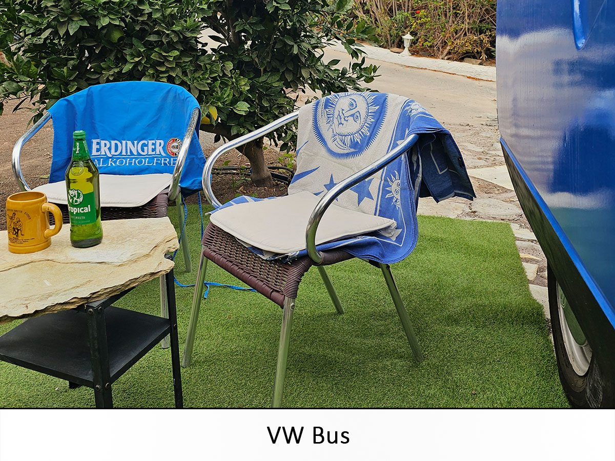 Der liebevoll eingerichtete Bus bietet dir eine kleine Sitzecke für entspannte Abende im Garten der Finca, ein bequemes Bett für eine erholsame Nachtruhe und einen Kühlschrank, um deine Getränke kühl zu halten. Alles ist stilvoll und einfach gehalten – ideal für eine romantische Auszeit. Die Atmosphäre ist warm und einladend – ein besonderer Rückzugsort inmitten der Natur, perfekt für alle, die das Abenteuer und das Gefühl von Freiheit lieben.